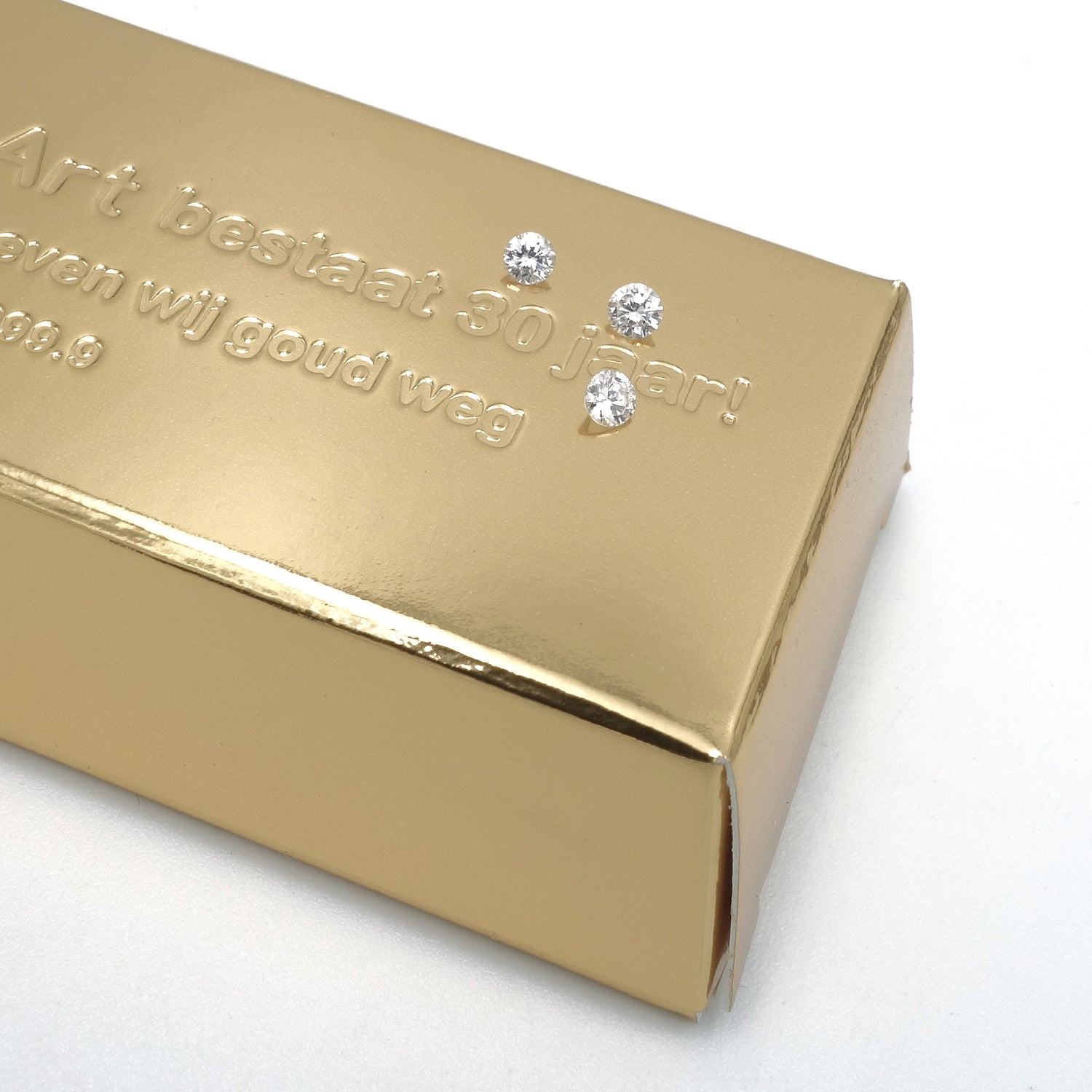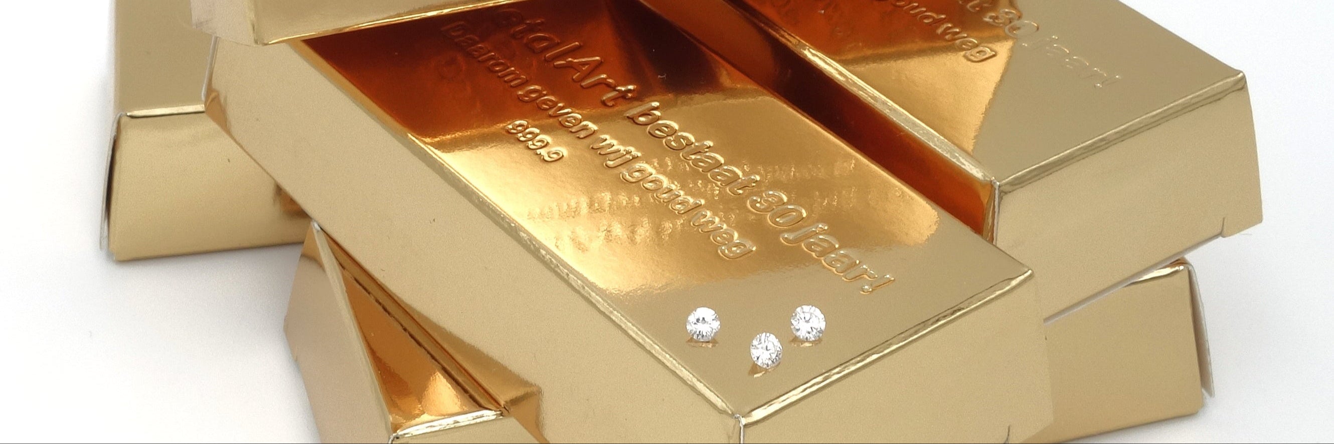 Ook bij een nieuwe winkelaankoop, opdracht én bij een bestelling via onze webshop krijg je een “goudbaar” mét kans op één van de drie diamanten.