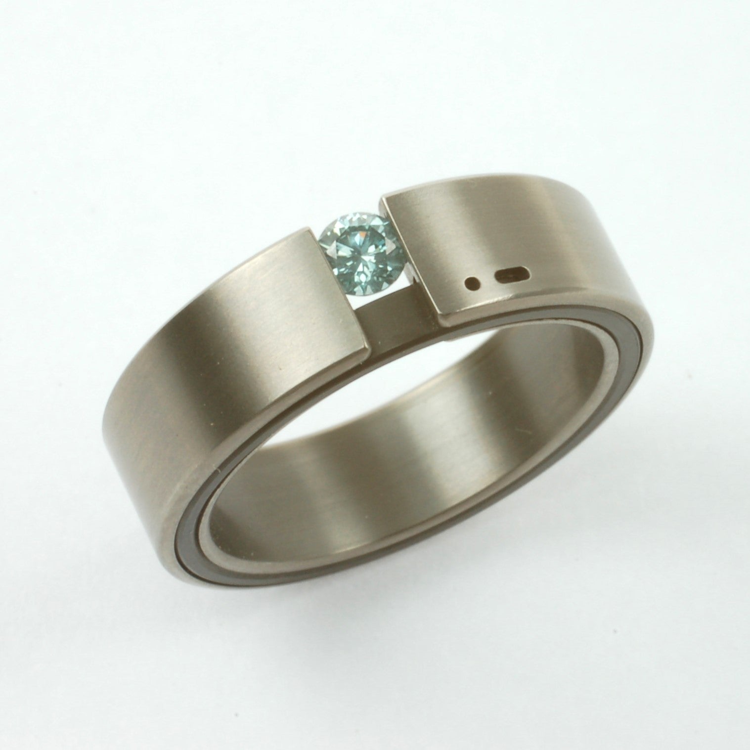 De Femka & Rae trouwringen zijn modern, strak en betekenisvol. Deze ringen combineren titanium met zirkonium en dragen elk een subtiele Morse-code: de voorletter van je geliefde is vereeuwigd in kleine stippen en streepjes aan de zijkant van de ring. In de Femka-ring schittert een briljant geslepen diamant van 0.14 ct in een koele blauwe tint, strak gespannen tussen twee delen titanium. De steen kan ook in wit of een andere kleur gekozen worden. Rae heeft dezelfde moderne lijnvoering, zonder steen maar met evenveel karakter. Een uniek ontwerp voor stellen die kiezen voor persoonlijke details en strak design.